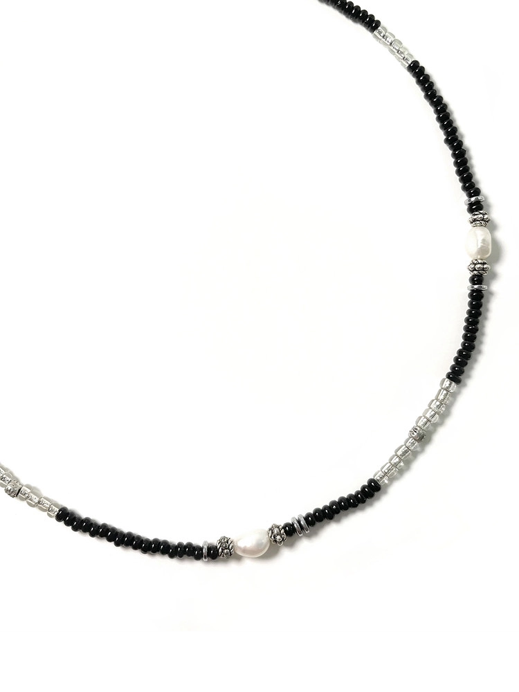 아크릴 비즈를 메인으로 사용 하고 담수진주로 포인트 주어 무게감도 가볍고 퀄리티도 놓치지 않은 매력적인 디자인 입니다. 실버 네크리스와 레이어드 하여 착용하면 더욱 스타일리시 하게 연출 하실 수 있습니다.